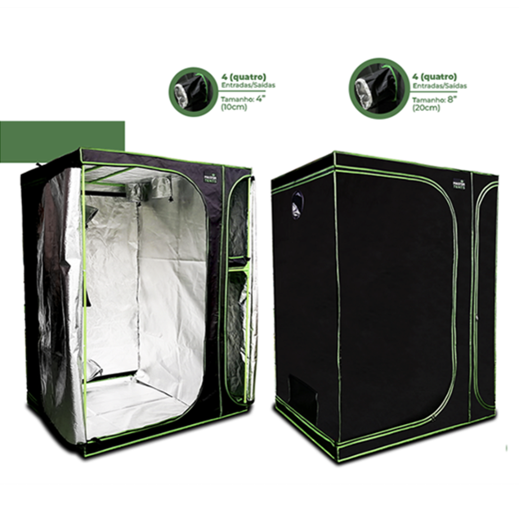 A Tenda 3 em 1 com medida 275x120x200cm da Master Tents agrega praticidade ao cultivador indoor. são tendas em tecido grosso, sintético, reflexivo e antichamas (Mylar 600D PRO), com estrutura em liga de alumínio leve e extremamente resistente, conectores em PVC para maior agilidade na montagem e zíperes robustos.